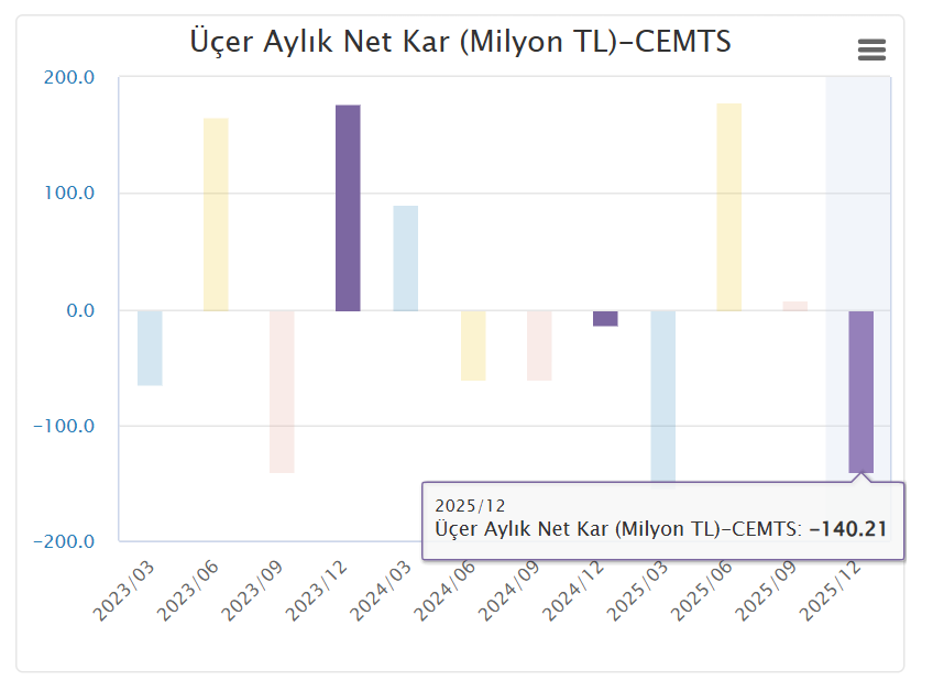 Çemtaş, 2025 yılında operasyonel olarak kâr üretmeye devam etse de artan finansman giderleri ve enflasyon muhasebesi etkisiyle yılı zararla kapattı. Önümüzdeki dönemde borçluluk yönetimi, finansman maliyetlerinin seyri ve iç talep görünümü, şirketin finansal performansı açısından kritik başlıklar olacak.