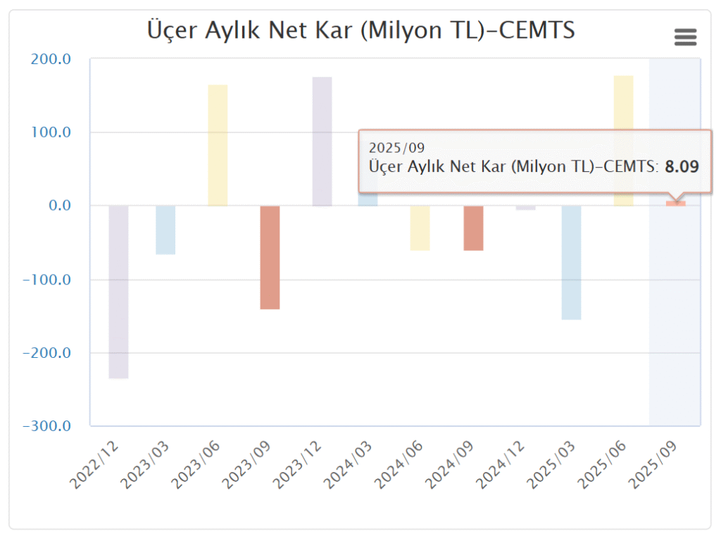 Çemtaş Çelik Makina (CEMTS) 2025 3. çeyrek bilanço analiz sonucu: “Sınırlı Pozitif” ✅