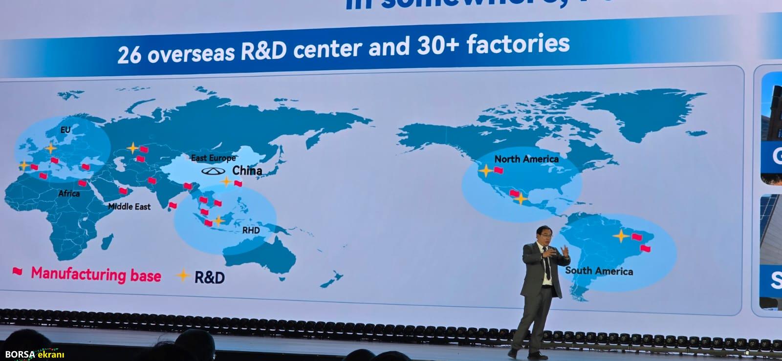 Auto Show’dan Hırant Kasapoğlu’nun haberine göre Zhang Guibing, yaptığı sunumda Chery’nin gelecekte, global ölçekte, toplam 26 Ar-Ge ve 30 üretim merkezine ulaşacağını aktardı. Chery’nin gelecekteki Ar-Ge ve üretim tesisleri, sunumda dünya haritası üzerinde işaretlenmişti. Gözlerden kaçmayan detay ise, Chery’nin Avrupa’daki üretim merkezleri arasında, İspanya ve İtalya’nın yanı sıra Türkiye’de de bir üretim tesisinin işaretli olmasıydı. Bunun anlamı, Chery’nin, Türkiye’de üretim tesisi için yatırım planlarını devam ettirdiği olabilir.