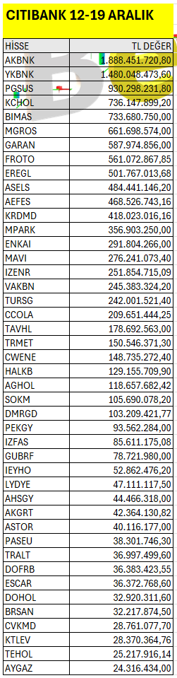Citibank’ın haftalık bazda Borsa İstanbul’da en fazla yatırım yaptığı hisselerin listesi. Listeyi PDF formatında indirip inceleyebilirsiniz.