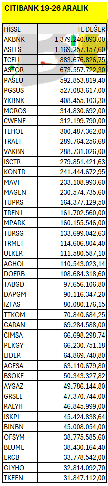 CITIBANK 19-26 KASIM 2025 HAFTALIK TAKAS ANALİZ
