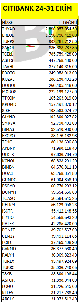 Citibank’ın haftalık bazda Borsa İstanbul’da en fazla yatırım yaptığı hisselerin listesi. Listeyi PDF formatında indirip inceleyebilirsiniz.