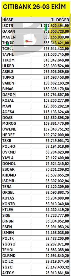 CITIBANK 26-03 EKİM 2025 HAFTALIK TAKAS ANALİZ