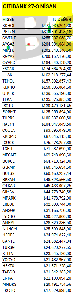Citibank’ın haftalık bazda Borsa İstanbul’da en fazla yatırım yaptığı hisselerin listesi. Listeyi PDF formatında indirip inceleyebilirsiniz.