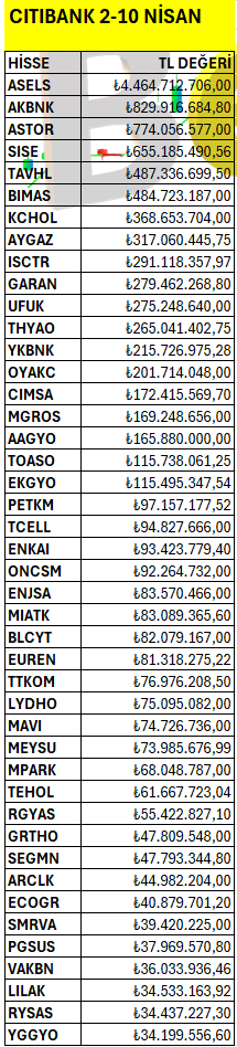 Citibank’ın haftalık bazda Borsa İstanbul’da en fazla yatırım yaptığı hisselerin listesi. Listeyi PDF formatında indirip inceleyebilirsiniz.
