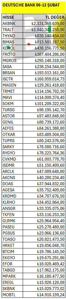 DEUTSCHE BANK 06-13 ŞUBAT 2026 HAFTALIK TAKAS ANALİZ