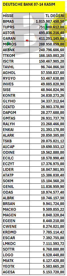 Deutsche Bank’ın haftalık bazda Borsa İstanbul’da en fazla yatırım yaptığı hisselerin listesi. Listeyi PDF formatında indirip inceleyebilirsiniz.