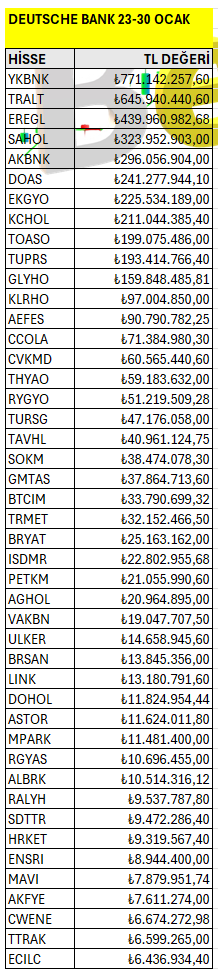 DEUTSCHE BANK 23-30 OCAK 2026 HAFTALIK TAKAS ANALİZ