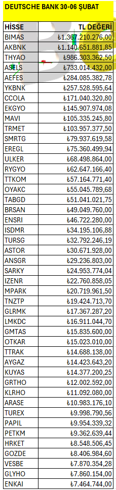 DEUTSCHE BANK 30-06 ŞUBAT 2026 HAFTALIK TAKAS ANALİZ