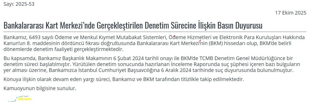 Bütün bu gelişmeler üzerine TCMB de siyesinde bir açıklams yayınladı. Açıklamada operasyonla ortaya çıkan süreci kısaca özetledi. Açıklamaya göre olayın ortaya çıkmadı 2024 yılına kadar gidiyor. İşte TCMB’nin o açıklaması: