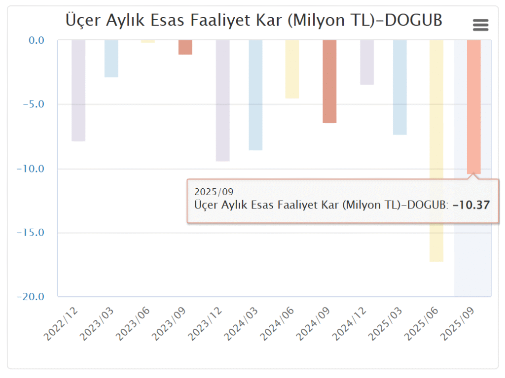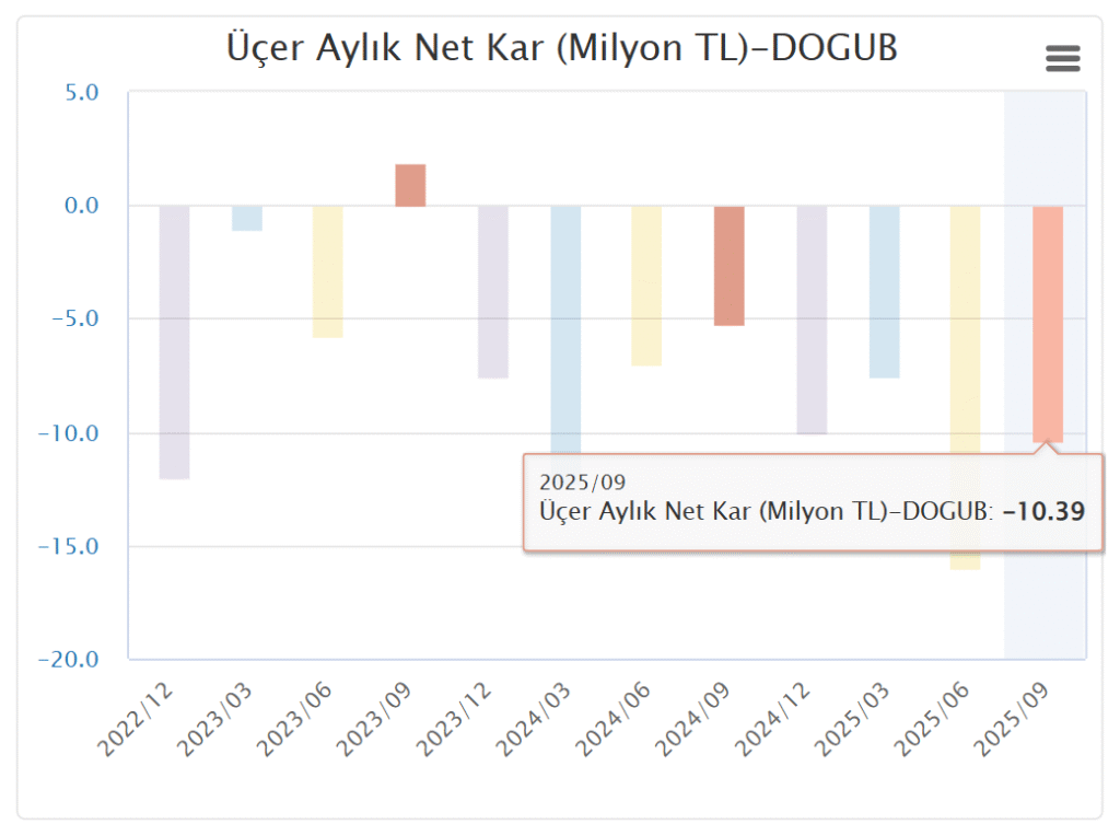 • DOGUB’un 2025/09 finansalları, operasyonel zayıflık ve yüksek finansman yükü nedeniyle negatif görünüyor.