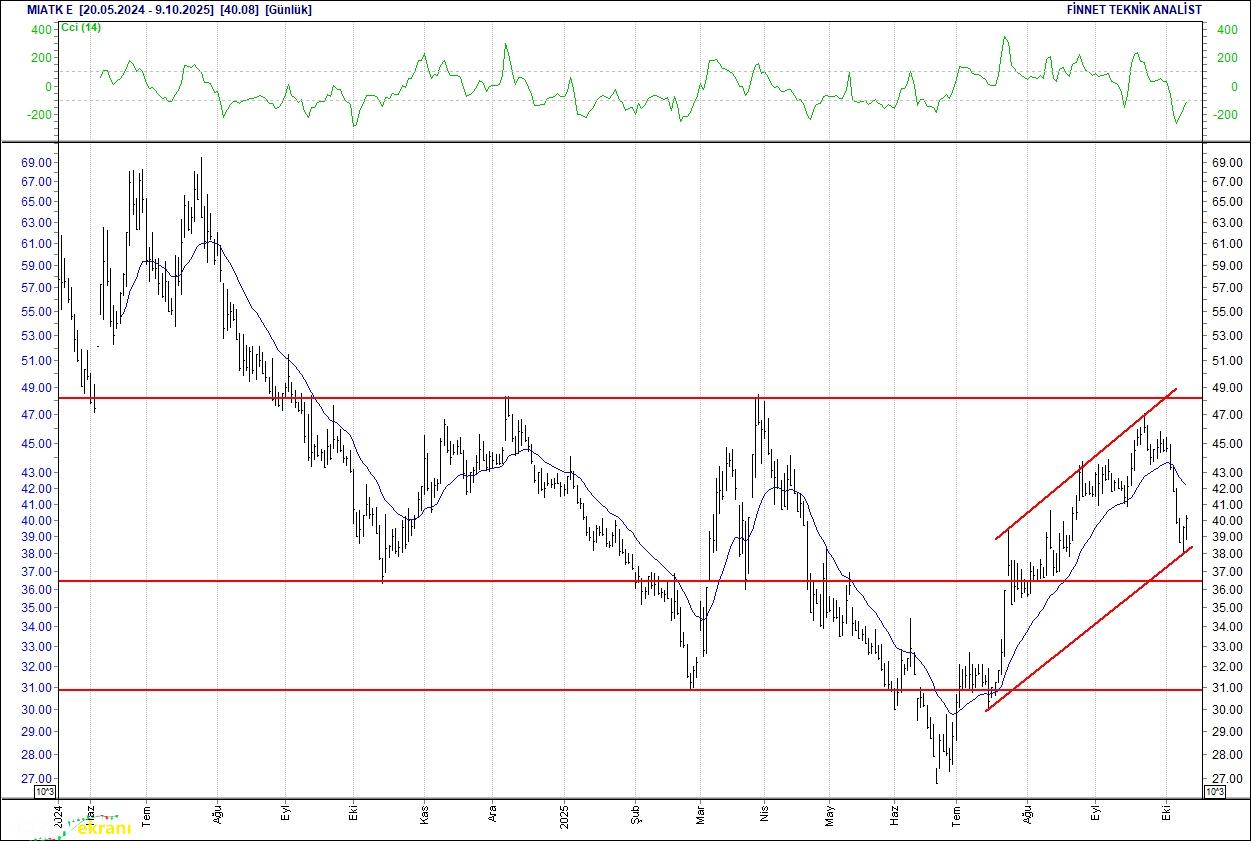 50.95 seviyesini kıramayınca satışlarla karşılaştı. 50.25 seviyesinin altındaki kapanışlarda 47.25 seviyesindeki desteğini test edebilir. 50.25 seviyesinin üzerindeki kapanışlarda ilk direnç 53.00 seviyesinde bulunuyor. nbsp;20 günlük ortalamasının altında. Alım aralığı: 47.25-45.75 Satım aralığı: 53.00-54.50 Endeks Ağırlığı (%): 0.60 Haftalık Değişim: IMKB 100 Endeksindeki ağırlığı geçen haftaya göre 0.018 puan arttı. MİA TEKNOLOJİ TABAN OLUŞUMU İZLENMELİ Hissede 40.08 seviyesinin altındaki kapanışlar, 38.00 seviyesine doğru satışların devam etmesine neden olabilir.