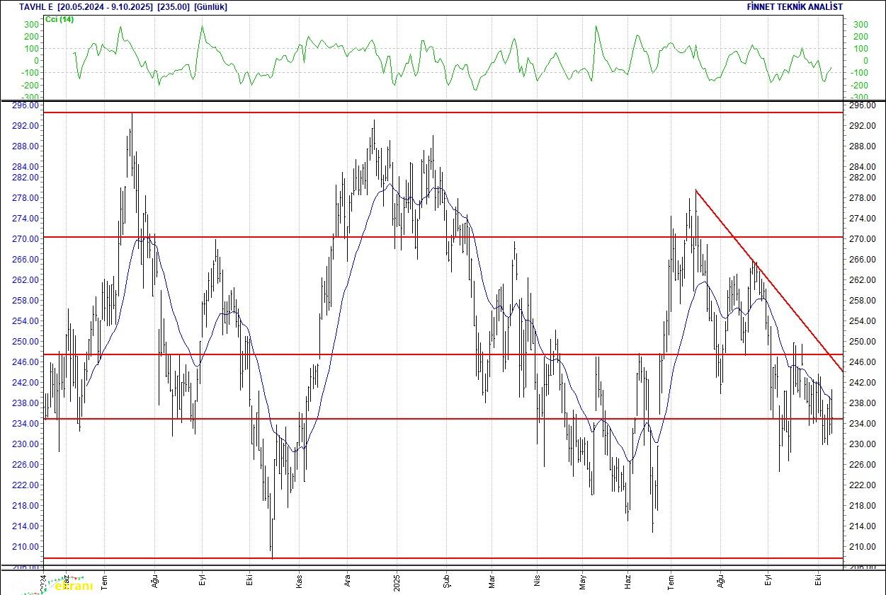 TAV HAVALİMANLARI DESTEKLERİNDE TUTUNMAYI DENEYEBİLİR 240.7 seviyesini kıramayınca satışlarla karşılaştı. Satış baskısının sürmesi halinde 231.00 seviyesinde tutunmayı deneyebilir.