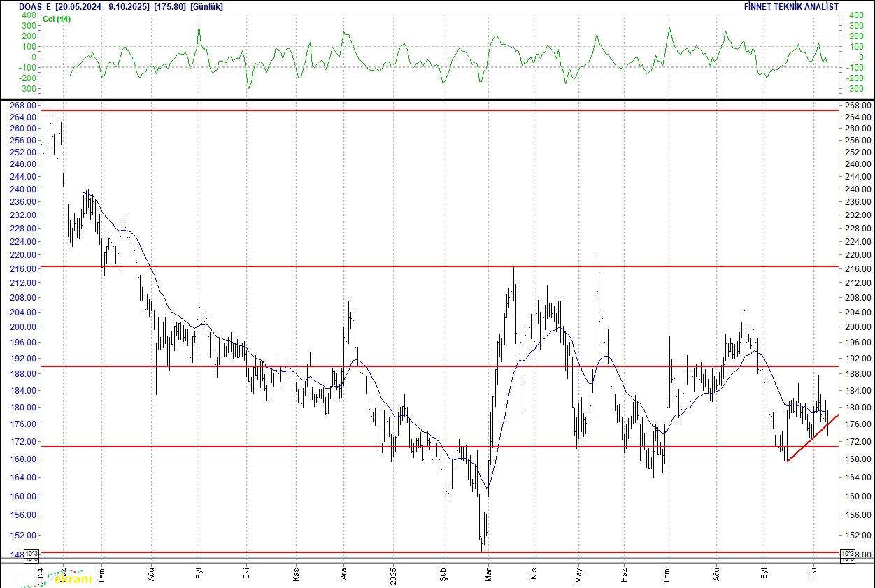 20 günlük ortalamasının altında. Alım aralığı: 82.50-79.00 Satım aralığı: 103.00-108.00 Endeks Ağırlığı (%): 1.07 Haftalık Değişim: IMKB 100 Endeksindeki ağırlığı geçen haftaya göre -0.019 puan azaldı. DOĞUŞ OTOMOTİV SATICILAR GÜÇLÜ Güç kaybediyor. 187.7 seviyesinden gelen satışlarla düşüş seyrinde.