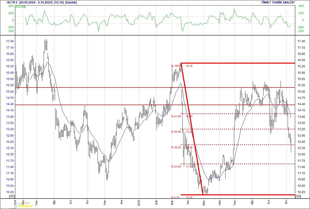 20 günlük ortalamasının altında. Alım aralığı: 25.25-23.90 Satım aralığı: 27.50-27.00 Endeks Ağırlığı (%): 0.56 Haftalık Değişim: IMKB 100 Endeksindeki ağırlığı geçen haftaya göre -0.013 puan azaldı. İŞ BANKASI (C) DÜŞÜŞTE 14.06 seviyesinden başlayan düşüş seyrinde. 12.1 seviyesinin altındaki kapanışlarda güç kaybı devam edebilir.
