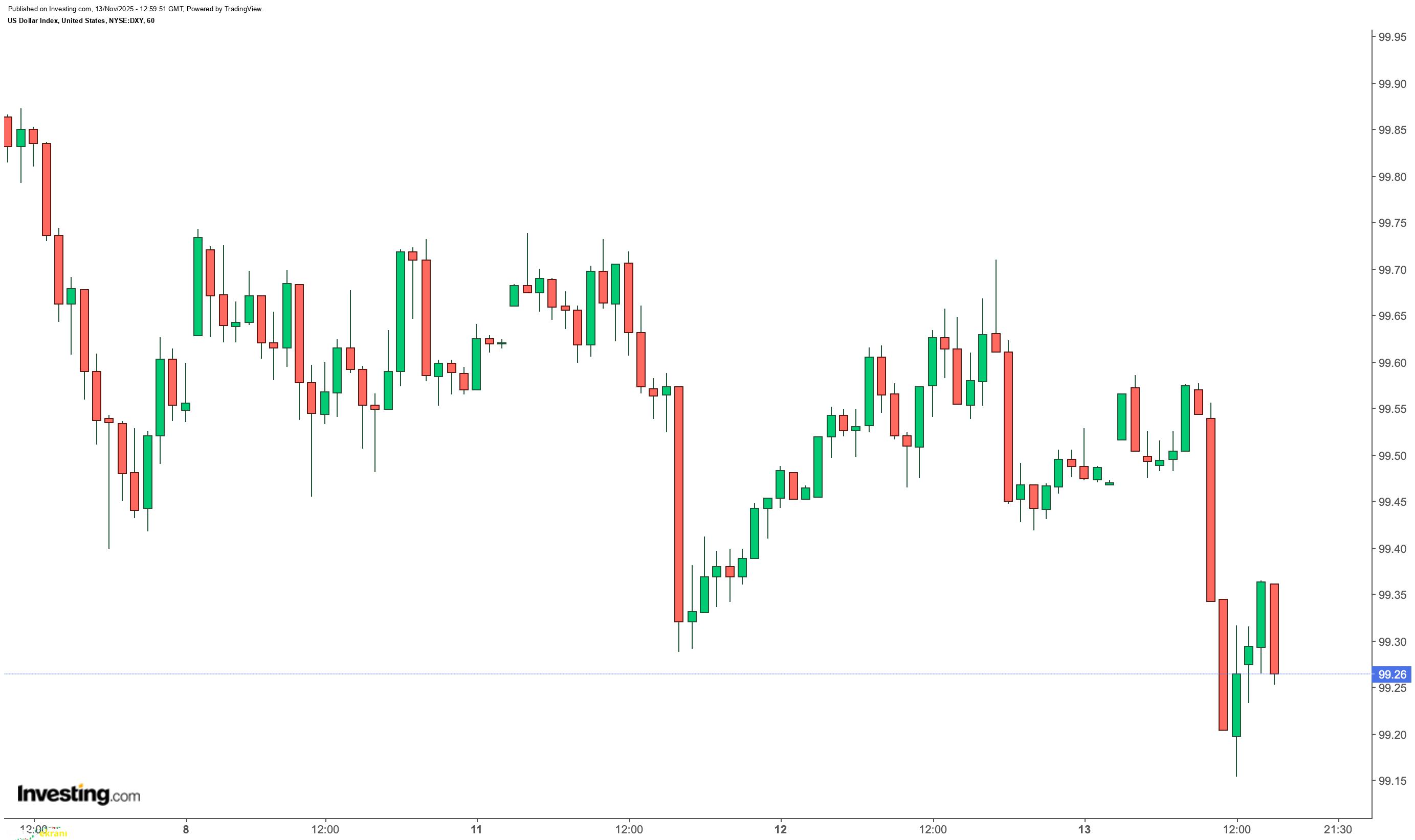 Investing.com – ABD hükümetinin kapanmasının sona ermesiyle ilk etapta piyasalarda oluşan iyimserlik yerini kararsız görünüme bıraktı. ABD dolar endeksi (DXY) bugün erken saatlerdeki kazançlarını geri vererek 99,3 seviyelerine geriledi. Bu düşüş, yatırımcıların ABD ekonomisinin durumu konusundaki temkinli tutumlarını yeniden benimsemeleriyle gerçekleşti.