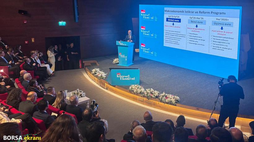 * Uzun vadeye baktığımız zaman fırsatlar da var ama ciddi yapısal zorluklar da var. Zaten zorlukların tamamı fırsat içeriyor. Bu toplantıda işin fırsat boyutuna da değinmek istiyoruz. * Ticarette korumacılık var. Bu kısa vadeli bir durum değil. Bu yapısal bir zorluk. Bunu fırsata dönüştürmemiz lazım. Dünya ekonomilerein baktığımızda yüksek bir küresel borçlulukla karşı karşıyayız. * Bizim için önemli, olan ticaret ortaklarımızdaki büyüme. Geçen sene yüzde 2 civarıydı. Bu sene yüzde 2,2. gelecek sene yüzde 2.3 civarında olacak. Ilımdı da olsa sınırlı da olsa toparlanma söz konusu. * Emtia fiyat endeksine bakarsanız son 2-3 yılda göreceli bir istikrar var. Enerji dışı emtia fiyatlarında artış devam edecek. Fakat enerji kısmında fiyat düşüşleri yaşanacak. Petrol fiyatları bu sene için IMF’nin tahminine göre 69 dolar varil başına, gelecek sene 66 dolar civarına iniyor. * Bu sınırlı da olsa bir iyileşmeye işaret ediyor. Bu dezenflasyon, cari açık ve büyüme açısından önemli bir trend. * Dünya bir borç sorunuyla karşı karşıya ise Türkiye o ülkelerden biri olmayacak. Çünkü nispeten bu noktada çok güçlü noktadayız. * 20-25 yıl önce Türkiye’nin savunma sanayi ihracatı yok denecek kadar azdı. Bugün Türkiye 10 milyar dolar ihracata doğru giden bir ülke konumunda. Eylül itibarıyla yıllıklandırılmış ihracat 8,4 milyar doların üzerine çıktı. * 90’lı yıllarda Türkiye dünyanın en büyük ithalatçılardan birisiyken şu anda ilk 10’a doğru hızlı yol kat ediyor. Bu sene ya da gelecek sene ilk 10’a girmiş olacağız. * Bütün ülkelerin olduğu gibi bizim de ana hedefimiz sürdürülebilir yüksek büyüme ve daha adil gelir dağılımı. * Fiyat istikrarı, mali disiplin ve sürdürülebilir dış denge. Bunlarla birlikte bunları kalıcı hale getirecek yapısal dönüşüm. Sanayide dönüşüm, yeşilk dönüşüm, dijital dönüşüm, üretken altyapı yatırımları, kamu maliyesi reformları. Program sadece para politikası üzerinden yürümüyor. Diğer bileşenler de güçlü şekilde devrede. * Program öncesi cari açık milli gelire oran olarak yüzde 5,5 civarlarındaydı ve rezerv endişesi vardı. Dolayısıyla ilk yılımız özü itibariyle bu risklerin kontrol altına alınması ve yönetilmesi süreciydi.