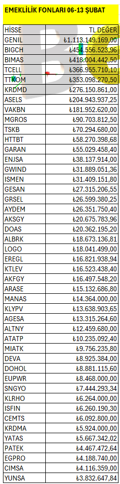 EMEKLİLİK FONLARI 06-13 ŞUBAT 2026 HAFTALIK TAKAS ANALİZ