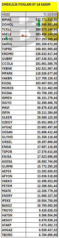 EMEKLİLİK FONLARI 07-14 KASIM 2025 HAFTALIK TAKAS ANALİZ