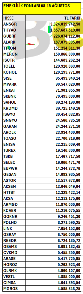 EMEKLİLİK FONLARI 08-15 AĞUSTOS 2025 HAFTALIK TAKAS ANALİZ