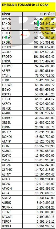 EMEKLİLİK FONLARI 09-16 OCAK 2026 HAFTALIK TAKAS ANALİZ