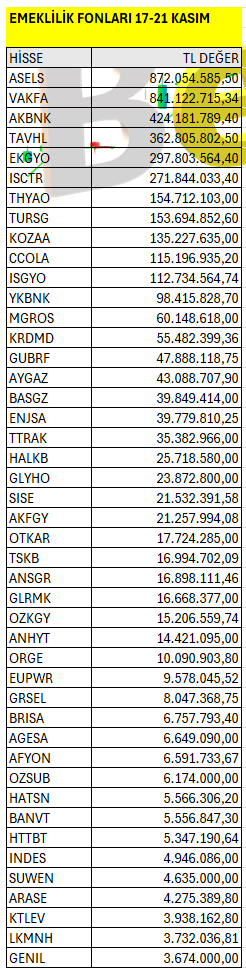 Emeklilik Fonları’nın haftalık bazda Borsa İstanbul’da en fazla yatırım yaptığı hisselerin listesi. Listeyi PDF formatında indirip inceleyebilirsiniz.