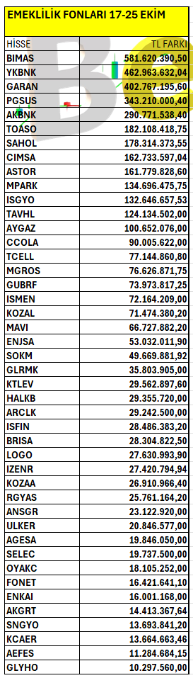 Emeklilik Fonları’nın haftalık bazda Borsa İstanbul’da en fazla yatırım yaptığı hisselerin listesi. Listeyi PDF formatında indirip inceleyebilirsiniz.