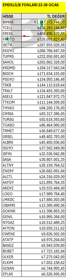 EMEKLİLİK FONLARI 23-30 OCAK 2026 HAFTALIK TAKAS ANALİZ