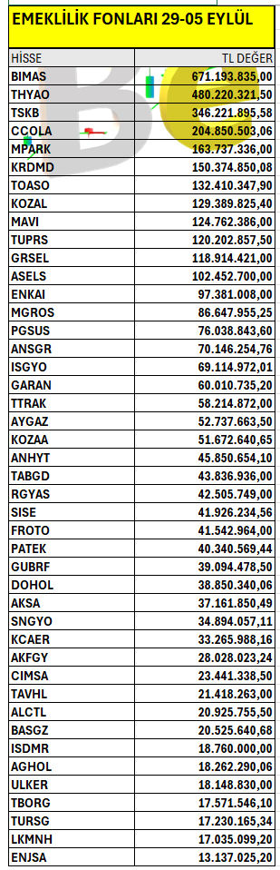 Emeklilik Fonları’nın haftalık bazda Borsa İstanbul’da en fazla yatırım yaptığı hisselerin listesi. Listeyi PDF formatında indirip inceleyebilirsiniz.