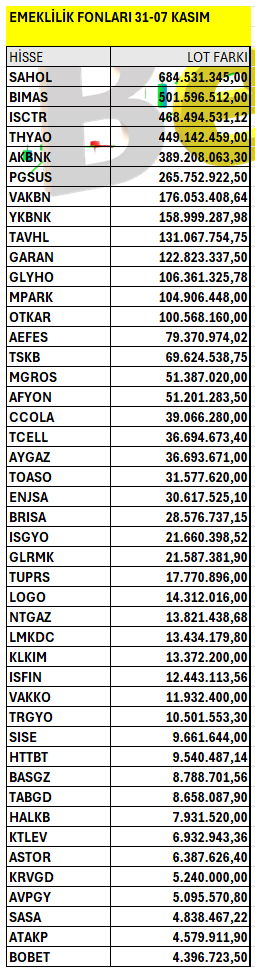 Emeklilik Fonları’nın haftalık bazda Borsa İstanbul’da en fazla yatırım yaptığı hisselerin listesi. Listeyi PDF formatında indirip inceleyebilirsiniz.