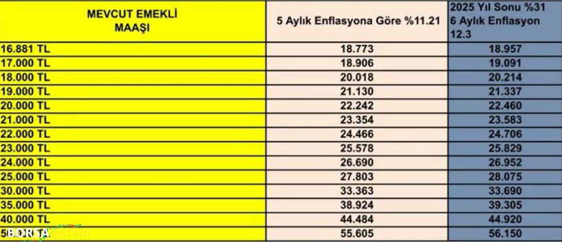 Erdursun, mevcut durumda 16 bin 881 TL olan en düşük emekli aylığının bu hesapla birlikte yaklaşık 18 bin 957 TL seviyesine çıkmasının beklendiğini ifade etti.