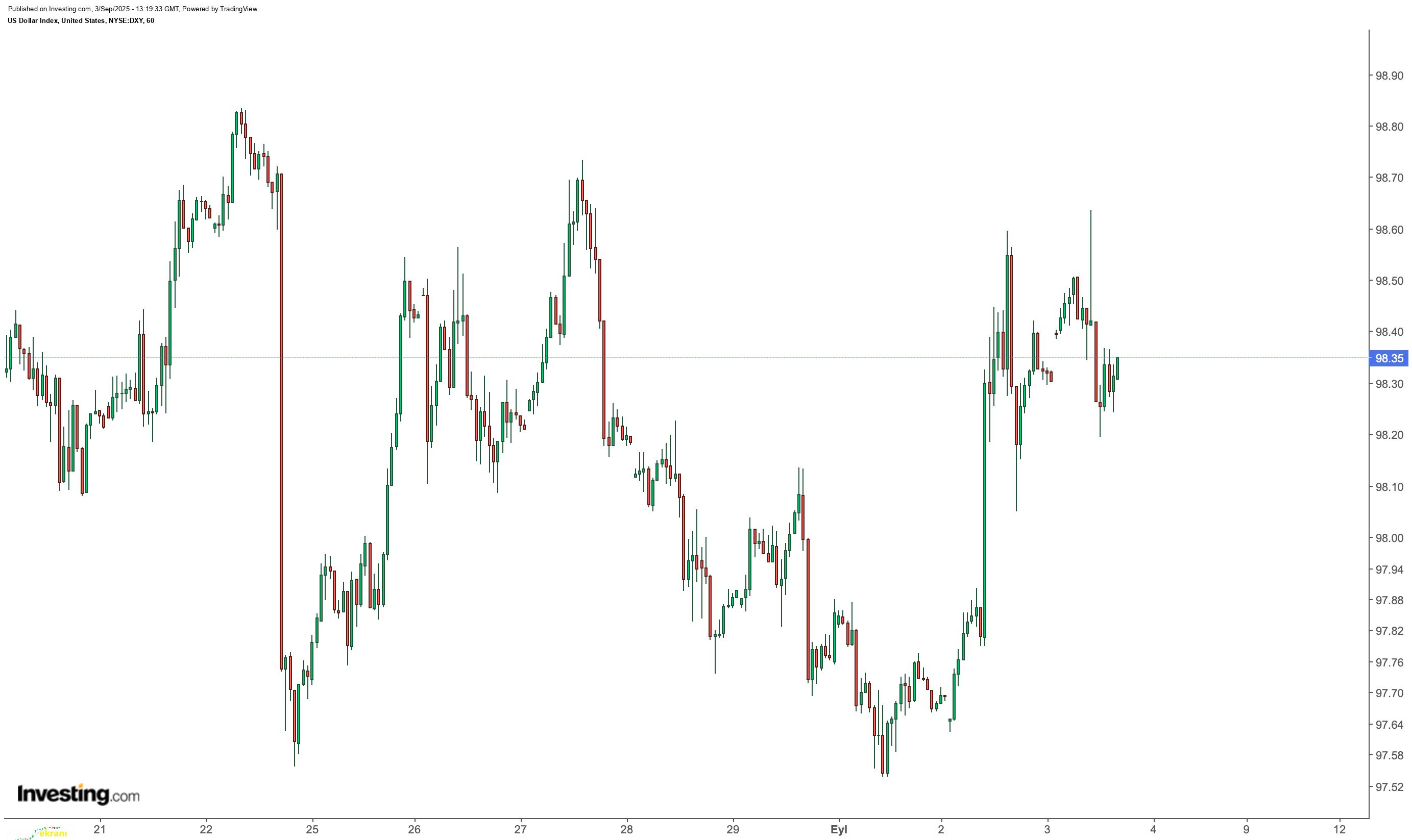 Fed’in Eylül ayında 25 baz puanlık bir faiz indirimi yapması piyasalarda yaygın şekilde bekleniyor. LSEG verilerine göre, yatırımcılar Eylül 17’deki toplantıda bu yönde bir adım atılmasını fiyatlamaya başladı. Faiz oranı vadeli işlemleri, bu yıl iki indirim ve 2026 yılının başlarında bir indirimin daha olabileceğini öngörüyor. Bu beklentiler, dolar endeksi (DXY) üzerinde de baskı oluşturdu; endeks son verilere göre 0,1 puanlık gerilemeyle 98,343 seviyesine indi.