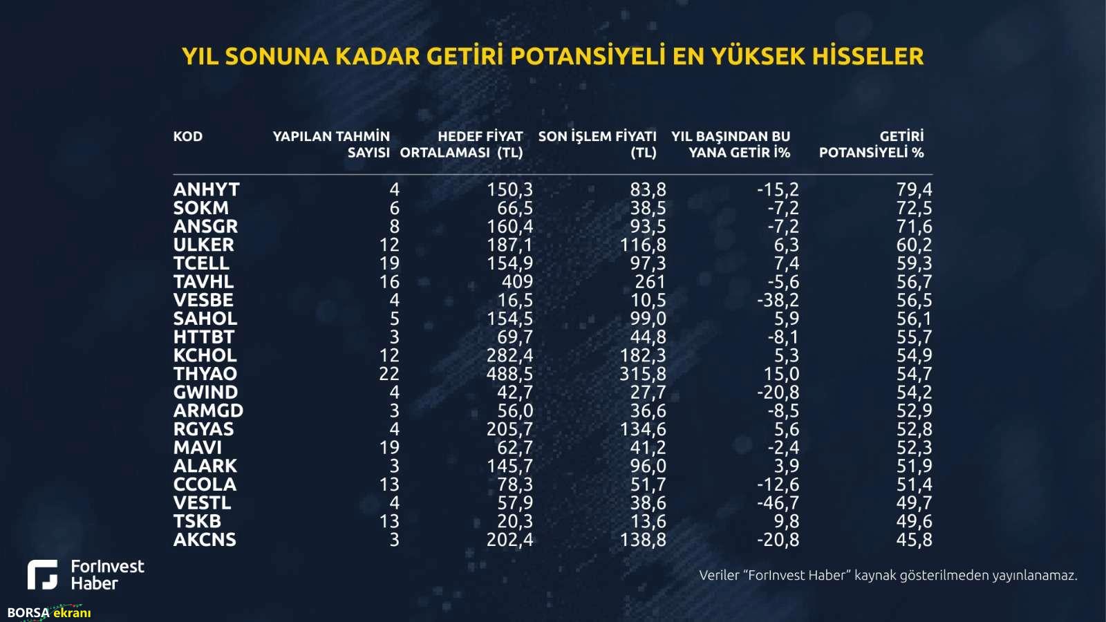 ForInvest Anketi: Borsa İstanbul’da en yüksek getiri potansiyeli sunan hisseler belli oldu