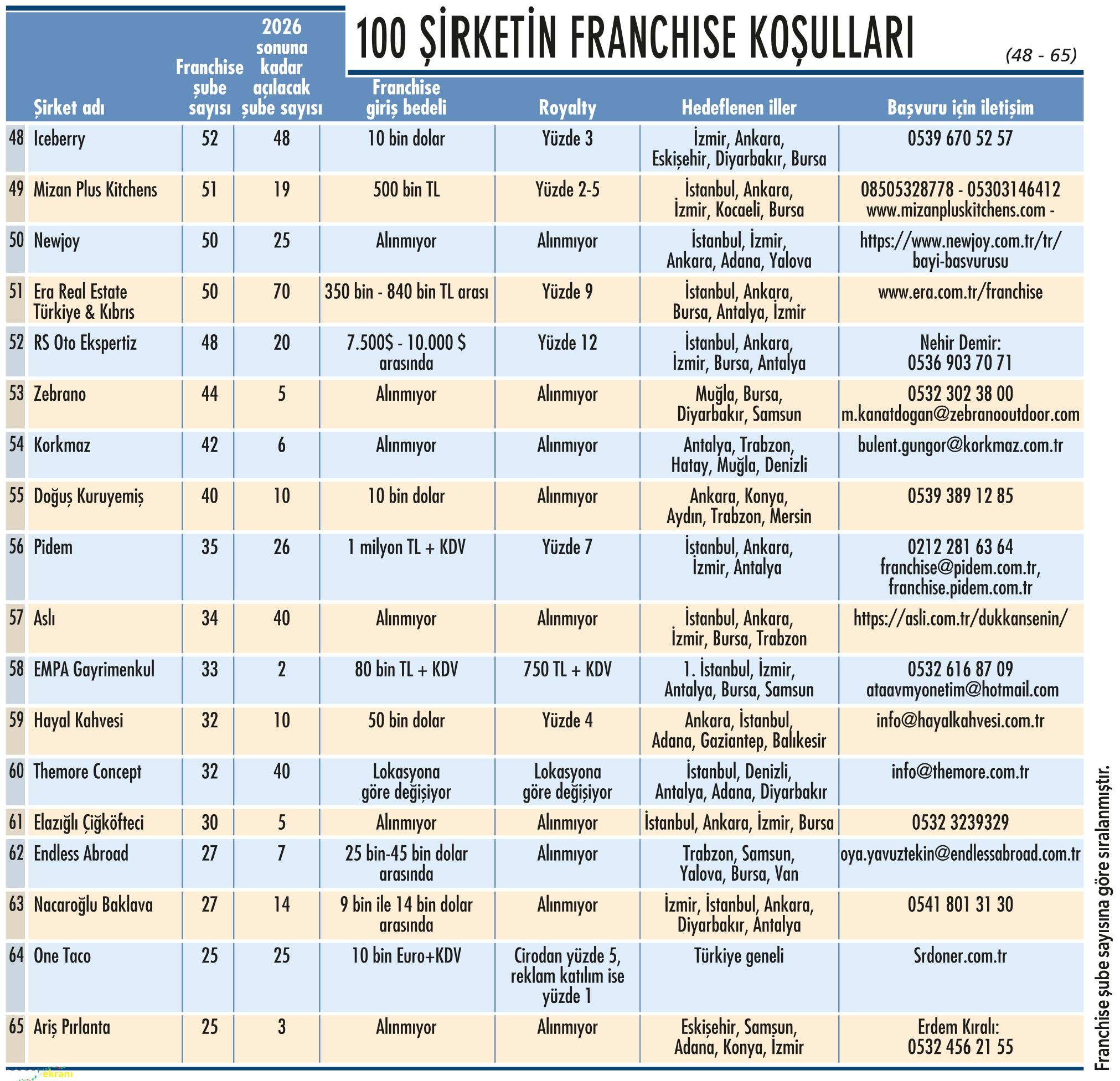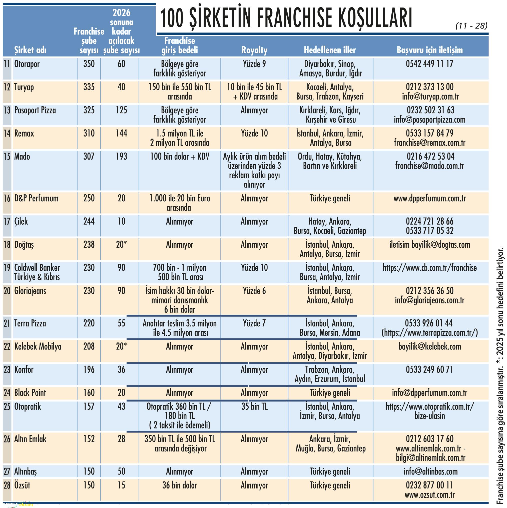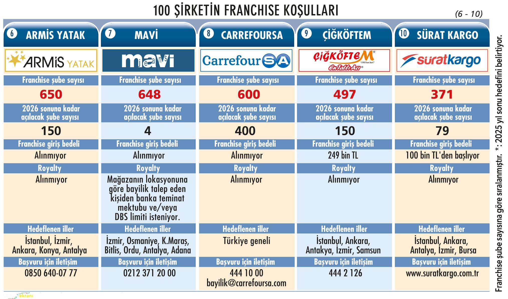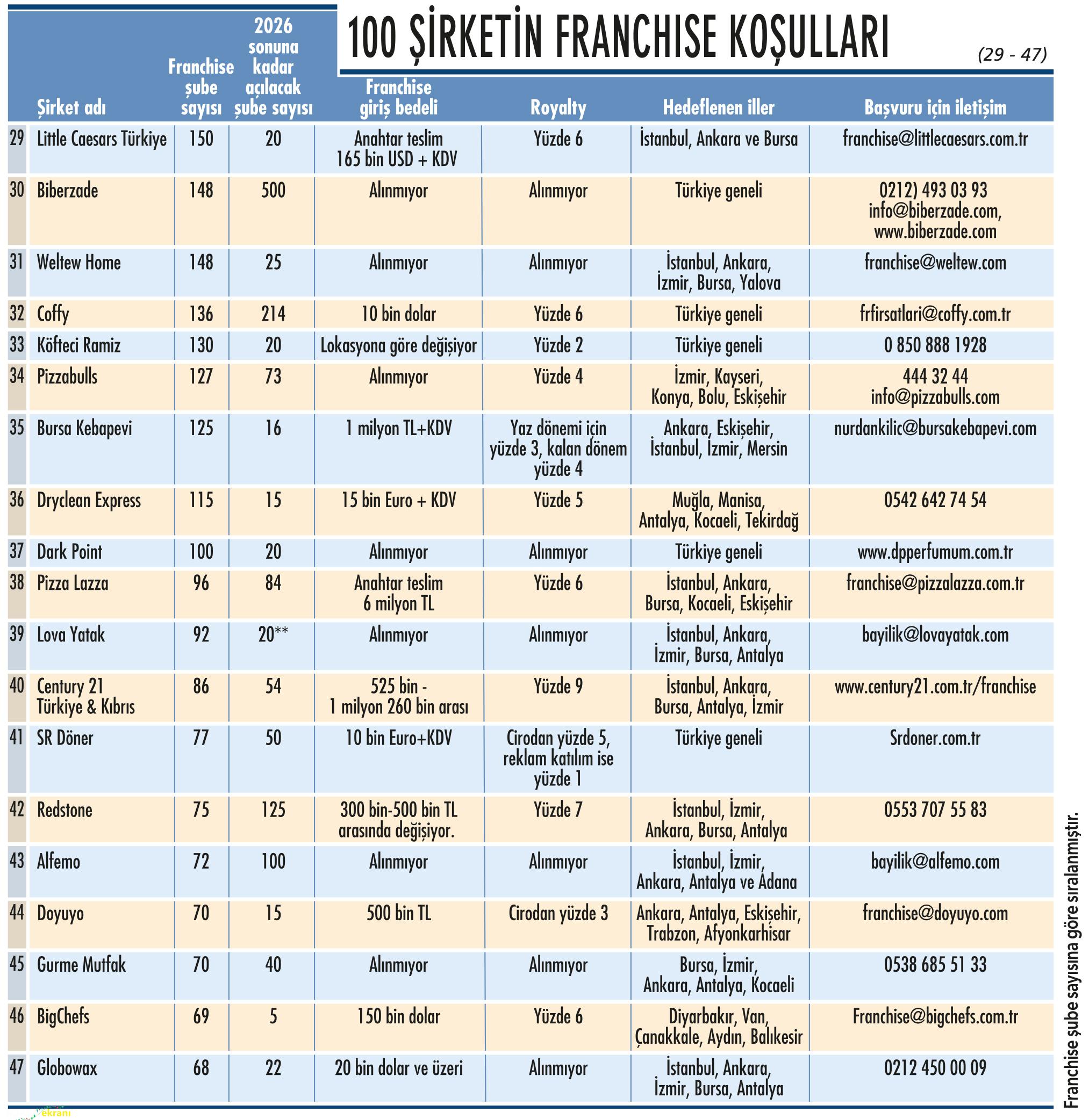 Ekonomist Dergisi’nin geleneksel “Franchise 100” araştırması, Türkiye’de franchise ağını en iyi yöneten, yatırımcısına kazandıran ve markasını küresel pazarlara taşıyan şirketleri bir araya getiriyor. Bu özel sayıda, yalnızca kârlı iş modellerini değil, aynı zamanda sürdürülebilir markalaşma stratejilerini de mercek altına alıyoruz.