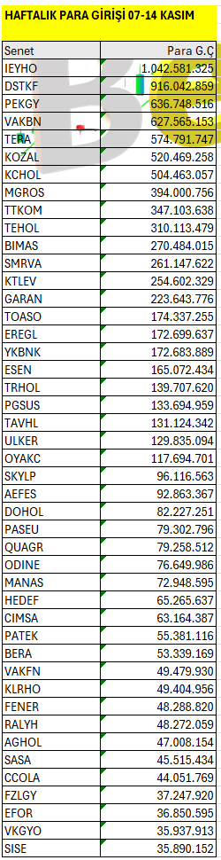 Haftalık para giriş çıkış tablosu. Veriler haftalık bazda 07-14 Kasım 2025 tarihini kapsamaktadır ve detaylı tabloyu PDF formatında tablonun altındaki linkten indire bilirsiniz.