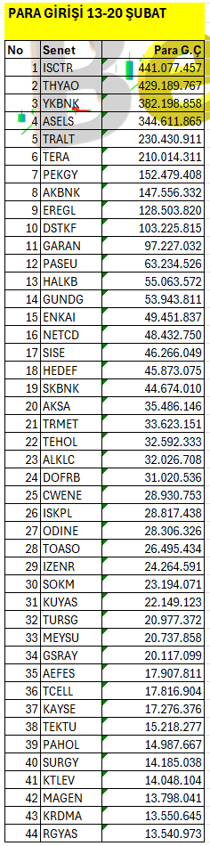 HAFTALIK PARA GİRİŞ ÇIKIŞ 13-20 ŞUBAT 2026