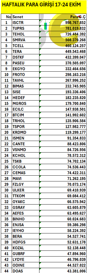 Haftalık para giriş çıkış tablosu. Veriler haftalık bazda 17-24 Ekim 2025 tarihini kapsamaktadır ve detaylı tabloyu PDF formatında tablonun altındaki linkten indire bilirsiniz.