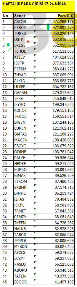 HAFTALIK PARA GİRİŞİ 17-24 NİSAN 2026
