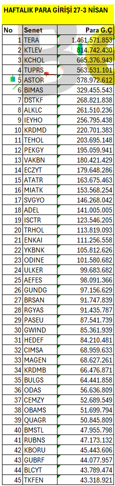 Haftalık para giriş çıkış tablosu. Veriler haftalık bazda 27-3 Nisan 2026 tarihini kapsamaktadır ve detaylı tabloyu PDF formatında tablonun altındaki linkten indire bilirsiniz.