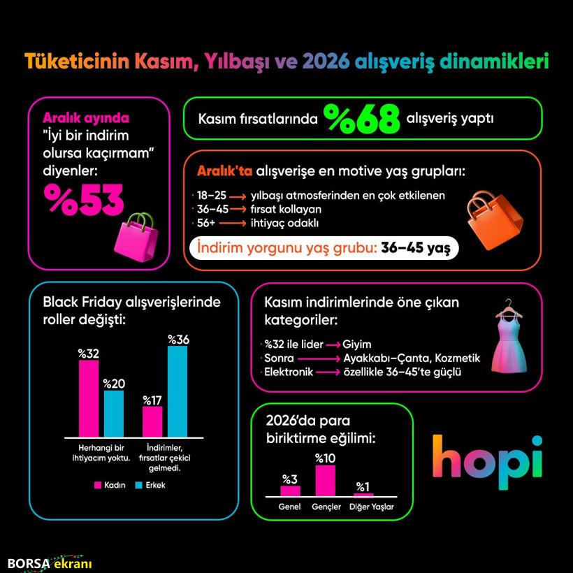 20 milyon kullanıcıya sahip platformu Hopi, tüketicilerin Kasım kampanyaları ve yılbaşı alışveriş alışkanlıklarını içeren yeni anket sonuçlarını yayımladı. Veriler, hediyelerin önemli kısmının Kasım indirimlerinde alındığını, Aralık ayının ise artık daha çok paylaşma ve anlam yaratma dönemi haline geldiğini gösteriyor. Katılımcıların yüzde 53’ü Aralık’ta iyi fırsat olursa değerlendiririm derken, çoğu hediyeyi Kasım’da almayı tercih ediyor. Yaş gruplarının tercihleri şöyle: