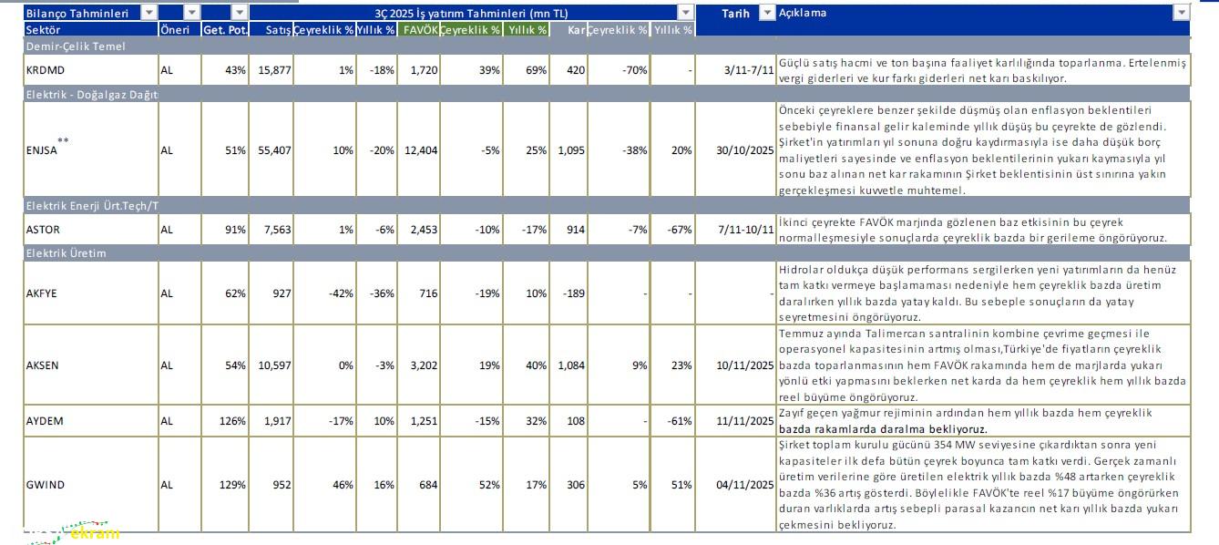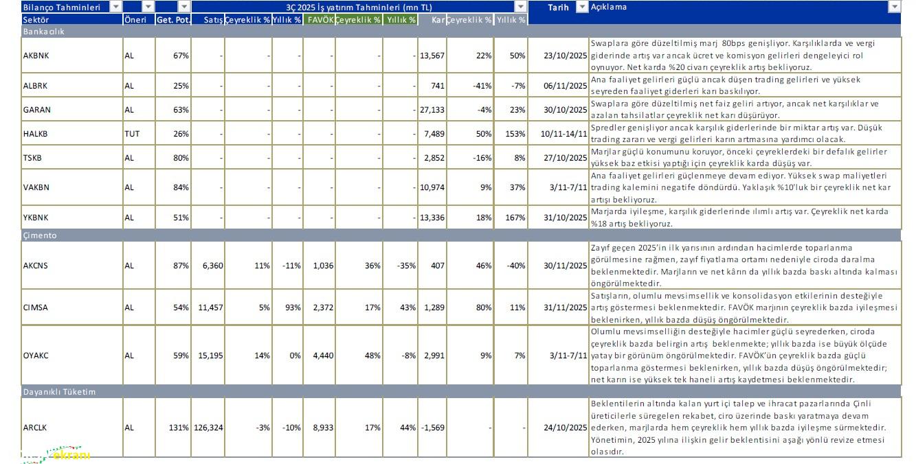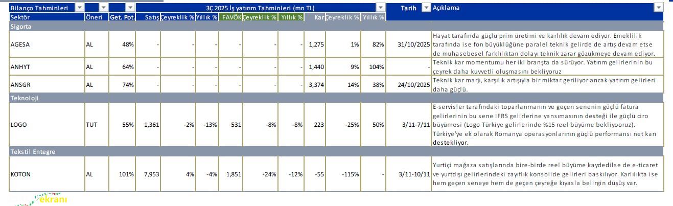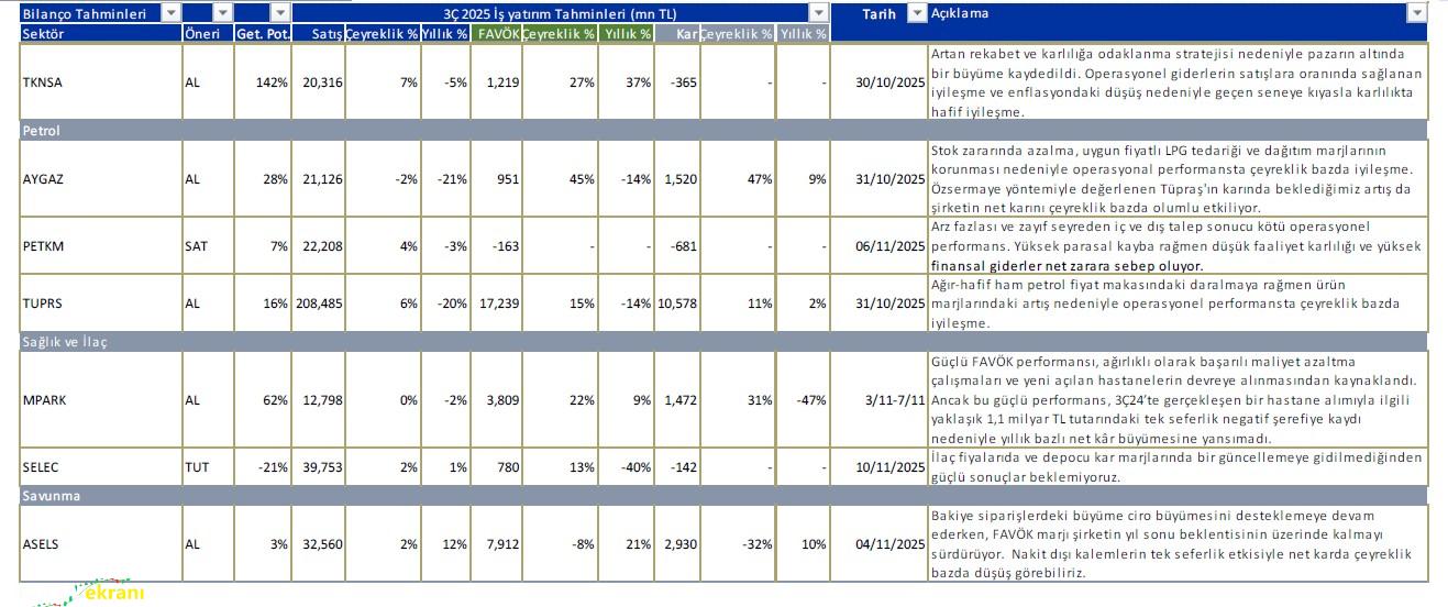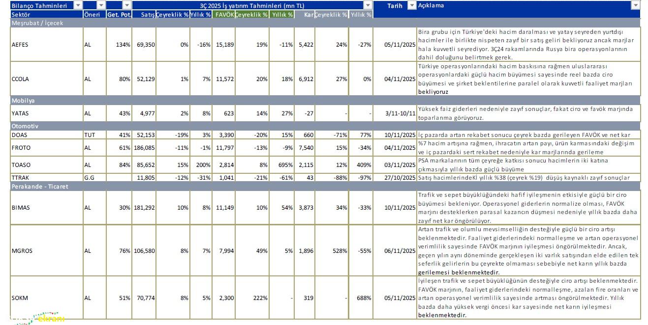 Hizmetler tarafında ise Tab Gıda (TABGD.IS) ve Şok Marketler (SOKM.IS) perakende sektöründe ön plana çıkarken, havacılıkta, Tav Havalimanları (TAVHL.IS) yılık FAVÖK büyümesinde üst sırada.