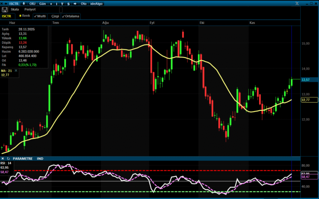 - Teknik açıdan bakıldığında, şu an ISCTR’in mevcut fiyat seviyesinin alım için isabetli bir giriş noktası olabileceği öne çıkıyor.