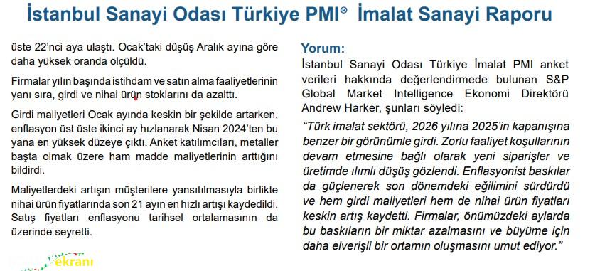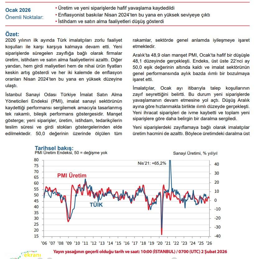 İstanbul Sanayi Odası Türkiye PMI İmalat Sanayi Raporu: PMI Ocak’ta 48,1 Olarak Gerçekleşti
