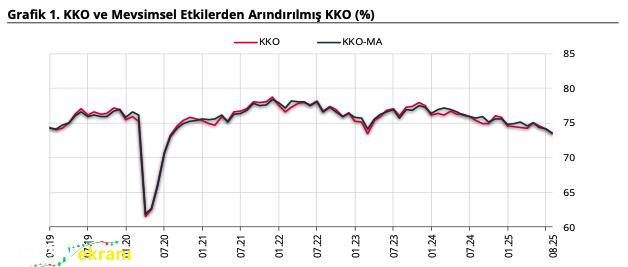 Mevsimsel etkilerden arındırılmamış Kapasite Kullanım Oranı (KKO), bir önceki aya göre 0,7 puan azalarak yüzde 73,5 seviyesinde kaydedildi.