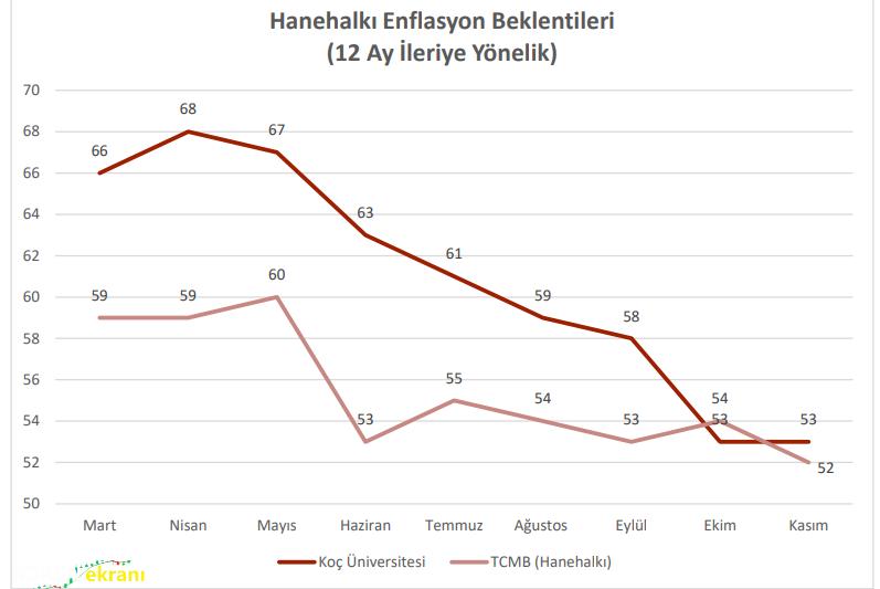 Koç Üniversitesi tarafından 12–22 Aralık 2025 tarihleri arasında gerçekleştirilen Hanehalkı Enflasyon Beklenti Anketi, enflasyon beklentilerindeki düşüş eğiliminin ivme kaybederek görece bir durağanlığa ulaştığını gösterdi. Ankete katılan 4 bin 672 kişinin yaklaşık üçte birinin kasım ayında da ankete katıldığı belirtildi. Hem kasım hem de aralık anketine katılan bireylerde ise 12 ay sonrası enflasyon beklentisinin 2 puan arttığı gözlendi. Mart–aralık dönemi genelinde sonuçların büyük ölçüde Türkiye Cumhuriyet Merkez Bankası’nın sektörel enflasyon beklenti anketiyle paralel seyrettiği, ancak son iki ayda Koç Üniversitesi anketinin daha durağan bir görünüm sergileyerek sınırlı ölçüde ayrıştığı ifade edildi.