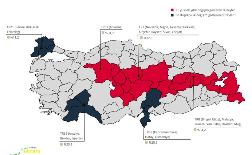 Yıllık artışta Doğu Anadolu öne çıktı