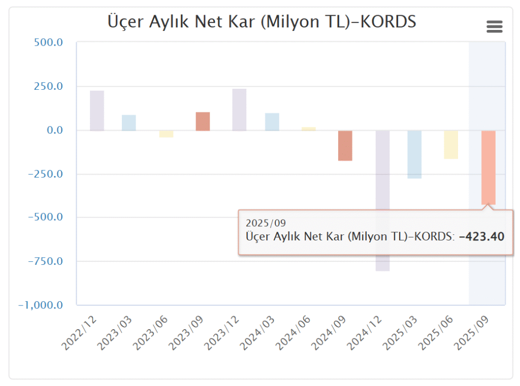 Kordsa Teknik Tekstil A.Ş. (KORDS) 2025 3. çeyrek bilanço analiz sonucu: “Sınırlı Negatif” ⚠️