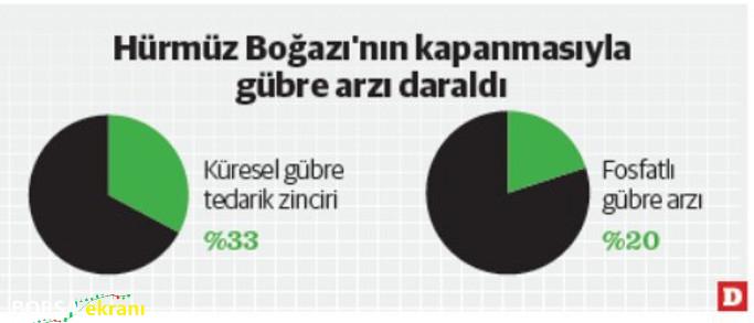 Orta Doğu’daki gübre ve enerji hatlarındaki kesintiler, dünya tarımını da tehdit ediyor. Hürmüz Boğazı’ndaki kesinti 2022’deki Ukrayna krizinden daha derin bir gıda şoku riski doğurdu. Hürmüz Boğazı’nda gemi trafiğinin durma noktasına gelmesi, küresel nitratlı gübre arzının yüzde 38’ini, fosfatlı gübre arzının da yüzde 20’sini kesintiye uğrattı. Basra Körfezi’nden sevkiyatların durması, dünya genelindeki çiftlikler için doğrudan gıda güvenliği riski oluştururken, küresel tarım tedarik zincirini de sarsıyor. Veri analitik şirketi Kpler ile küresel emtia analiz kuruluşu CRU verilerine göre, küresel gübre ve enerji tedarik zincirinin merkez üssü konumundaki Orta Doğu’da kriz her geçen gün derinleşiyor. Hürmüz Boğazı’nın kapanmasının küresel gübre tedarik zincirinde toplamda yüzde 33’lük daralmaya yol açtığı tahmin ediliyor. Bölgeden yapılan yıllık 22 milyon tonluk üre ihracatı durma noktasına gelirken, küresel üre arzının yaklaşık yüzde 46’sının doğrudan Körfez bölgesinden sağlanması mevcut tabloyu daha da derinleştirdi. Dünyadaki üre ihracatının yaklaşık üçte biri Hürmüz’den yapılırken, fosfatlı gübre üretiminde kritik hammadde olan küresel kükürt ihracatının yüzde 45’i de bu stratejik su yolu üzerinden sevk ediliyor. Lojistik aksamalar nedeniyle son 2 haftada ihraç edilmesi planlanan 2,1 milyon tondan fazla üre stokunun yaklaşık yarısı gemilere yüklenemedi. Uzmanlar, sevkiyatlardaki bu blokajın küresel hasat döneminde rekolte kayıplarına yol açabileceği uyarısında bulunuyor.