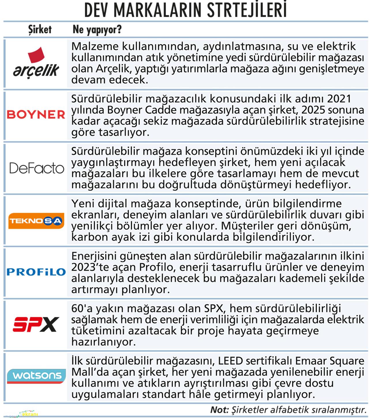 Ekonomist’in 28 Eylül – 11 Ekim 2025 tarihli sayısındanDeloitte Global Perakende Görünümü 2024 raporuna göre, perakendecilerin yüzde 62’si sürdürülebilirliği gelir artışı için bir yol olarak görüyor. Rapora göre nesiller arası kayma da sürdürülebilirliği öne çıkarıyor. Genç tüketiciler, yalnızca sürdürülebilir ürünler değil, aynı zamanda markaların bu alandaki şeffaflığına da önem veriyor. Gen Z ve milenyallerin yüzde 66’sı sürdürülebilir markaları tercih ediyor. Yeni nesil tüketicileri çekmek isteyen perakendeciler üretimden tedarik zincirine kadar her alanda çevreci uygulamalar hayata geçiriyor. Diğer taraftan giderek artan enerji maliyetlerine karşı şirketler verimlilik odaklı projelere yöneliyor. Bu dönüşüm mağaza konseptlerine de sıçramış durumda. Markalar sürdürülebilir mağazacılık konseptleriyle rekabette öne çıkmaya çalışıyor.