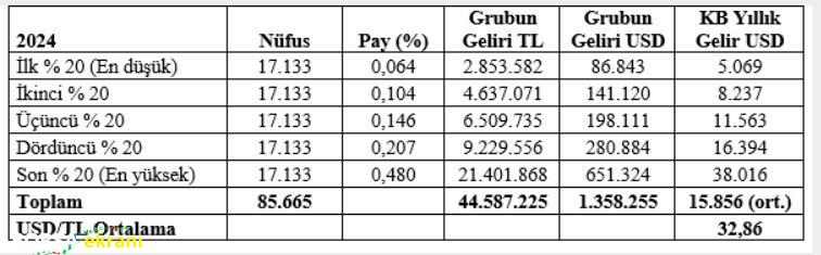 Ekonomist Mahfi Eğilmez, “Gelir Dağılımı 2026” başlıklı yazısında paylaştığı tabloyla Türkiye ekonomisinin gelir yapısına ilişkin çarpıcı bir tablo ortaya koydu. TÜİK verileri ve kendi hesaplamalarına dayanan çalışma, kişi başına gelir verilerinin arkasındaki gerçekleri gözler önüne serdi.